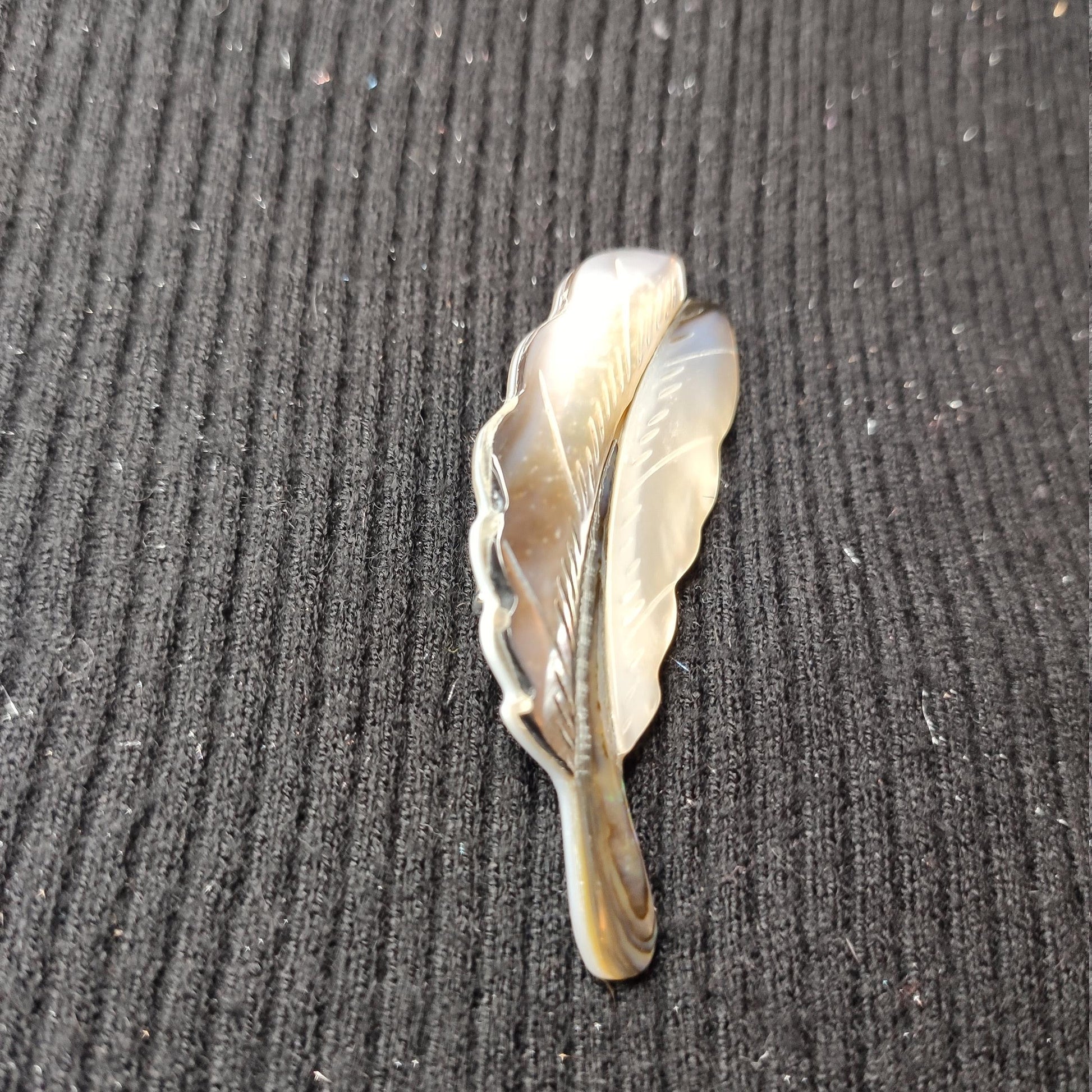 Each brooch is meticulously crafted with intricate mother shell stitching and delicate metalwork, ensuring no two are exactly alike. The shimmering feather design captures the essence of the oceanβs beauty, making it a stunning statement piece for any occasion.