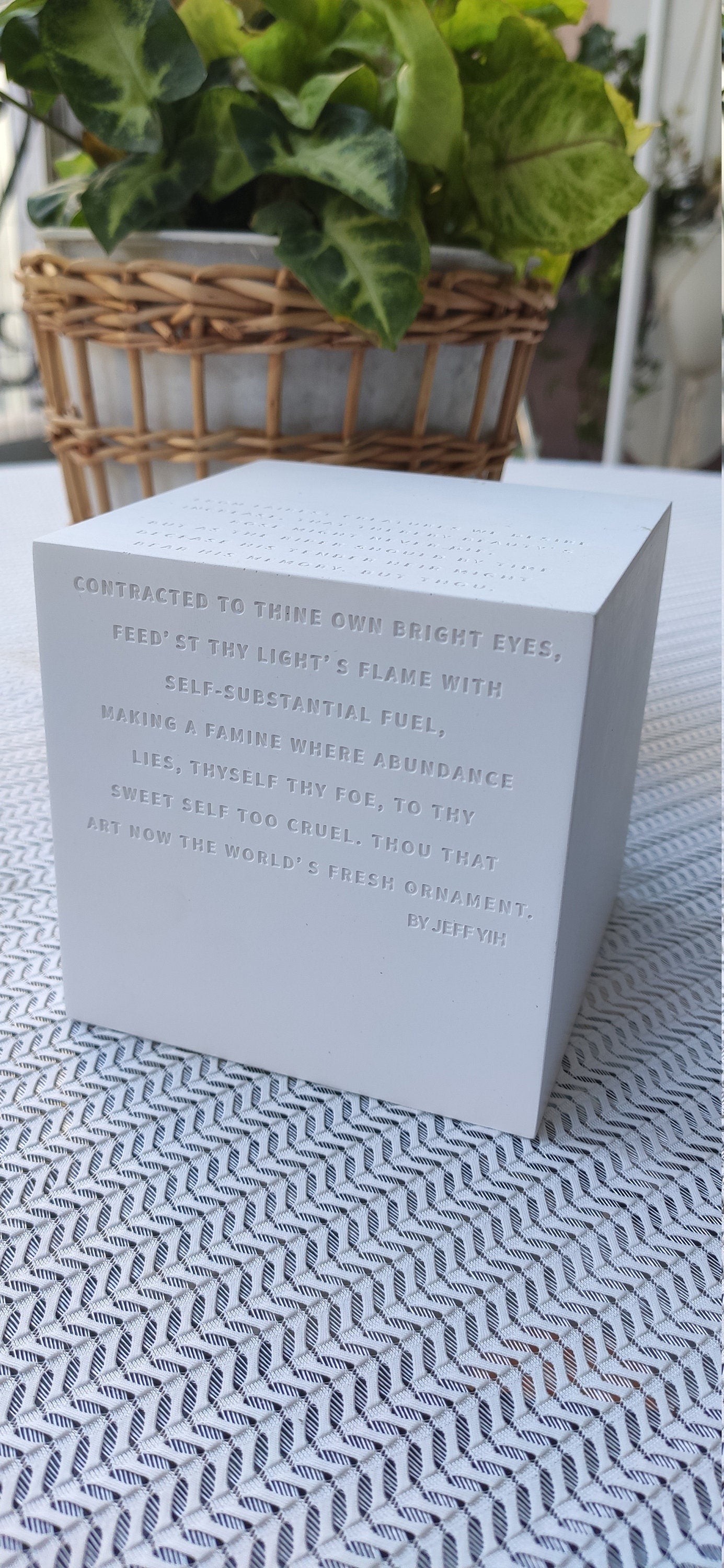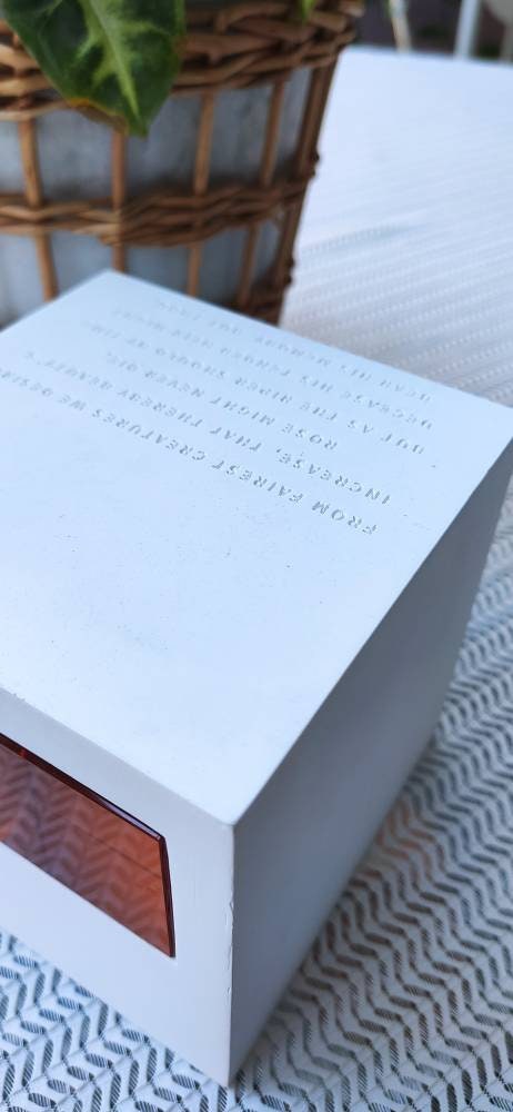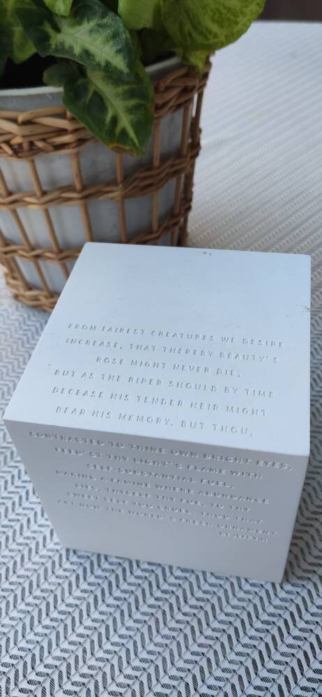 Elevate your holiday decor or everyday space with these stunning handmade white plaster orange crystal ornaments, featuring a timeless Shakespeare sonnet etched into their design. Perfect for lovers of minimalist design, modern aesthetics, or anyone who appreciates the beauty of literature and art, these ornaments combine the simplicity of white plaster with the sparkle of orange crystals and the elegance of Shakespeare’s words.